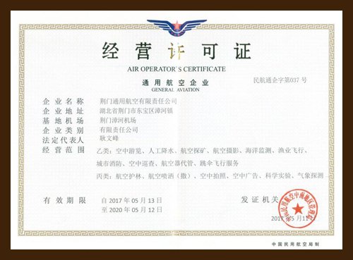 公司持有民航中南地區(qū)管理局頒發(fā)的《通用航空企業(yè)經(jīng)營(yíng)許可證》、《商業(yè)(非運(yùn)輸)航空運(yùn)營(yíng)人運(yùn)行合格證》(91部)、《維修許可證》(145部)等系列資質(zhì),整體規(guī)模和運(yùn)營(yíng)能力在中南地區(qū)居前列。