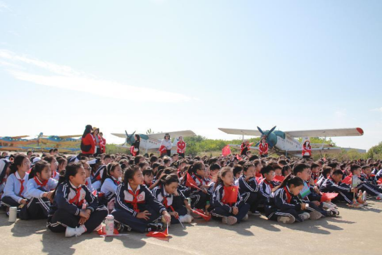 課程開(kāi)始前,同學(xué)們有序聚集到了荊門(mén)通航老機(jī)坪,在一架架觸手可及的飛機(jī)前開(kāi)始了本次科學(xué)教育實(shí)踐課。荊門(mén)通航工作人員介紹了公司基本情況,然后給同學(xué)們科普了國(guó)內(nèi)外航空事業(yè)發(fā)展歷程,還著重介紹了我國(guó)自主研發(fā)的國(guó)產(chǎn)三大飛機(jī)運(yùn)20、C919、AG600。同學(xué)們聽(tīng)聽(tīng)的認(rèn)認(rèn)真真,對(duì)航空事業(yè)發(fā)展脈絡(luò)有了初步的認(rèn)識(shí)。